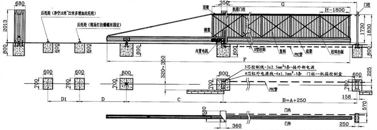 9、手動離合:門體裝有手動離合裝置,停電或檢修時,可打開離合手柄,然后以手動方式推拉門。