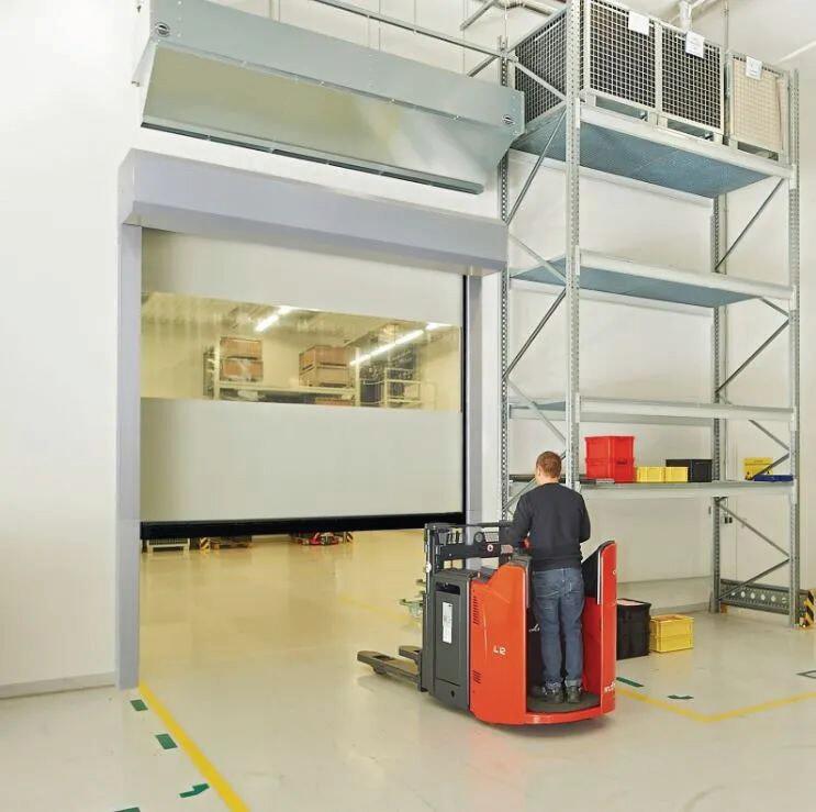 門簾采用聚氯乙烯 PVC 材質(zhì),內(nèi)襯高強(qiáng)度織物夾層,具備抗撕裂保護(hù)性能。門簾中間可選擇透明觀察視窗,用于判斷對向情況,以免發(fā)生撞擊事故。輕便結(jié)實的門簾配合勁動力的進(jìn)口快速門專用電機(jī),保證門快速頻繁啟閉通行。