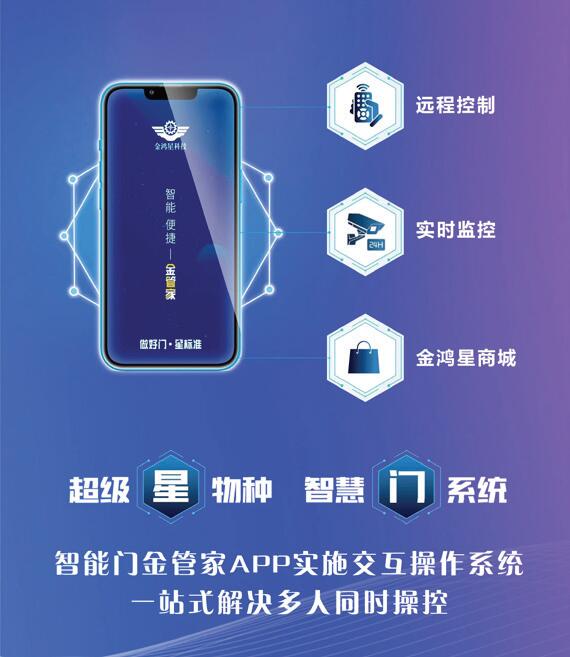 智慧門系統(tǒng)搭載的智能門金管家 APP 依托云計(jì) 算,物聯(lián)網(wǎng)等技術(shù),打造數(shù)字化數(shù)據(jù)中心,功能強(qiáng)大, 集數(shù)智化平臺(tái),遠(yuǎn)程操控,實(shí)時(shí)交互操作(一鍵過戶) 可視化監(jiān)控對(duì)講,金鴻星商城,形成數(shù)據(jù)開放平臺(tái), 實(shí)現(xiàn)人機(jī)物的萬物互聯(lián)。用戶可通過遠(yuǎn)程,監(jiān)控, 回放,運(yùn)行數(shù)據(jù),商場(chǎng)購(gòu)買原廠配件,雙向語音通話, 守護(hù)他們的第一道門口,讓終端客戶有更良好的體 驗(yàn)感。