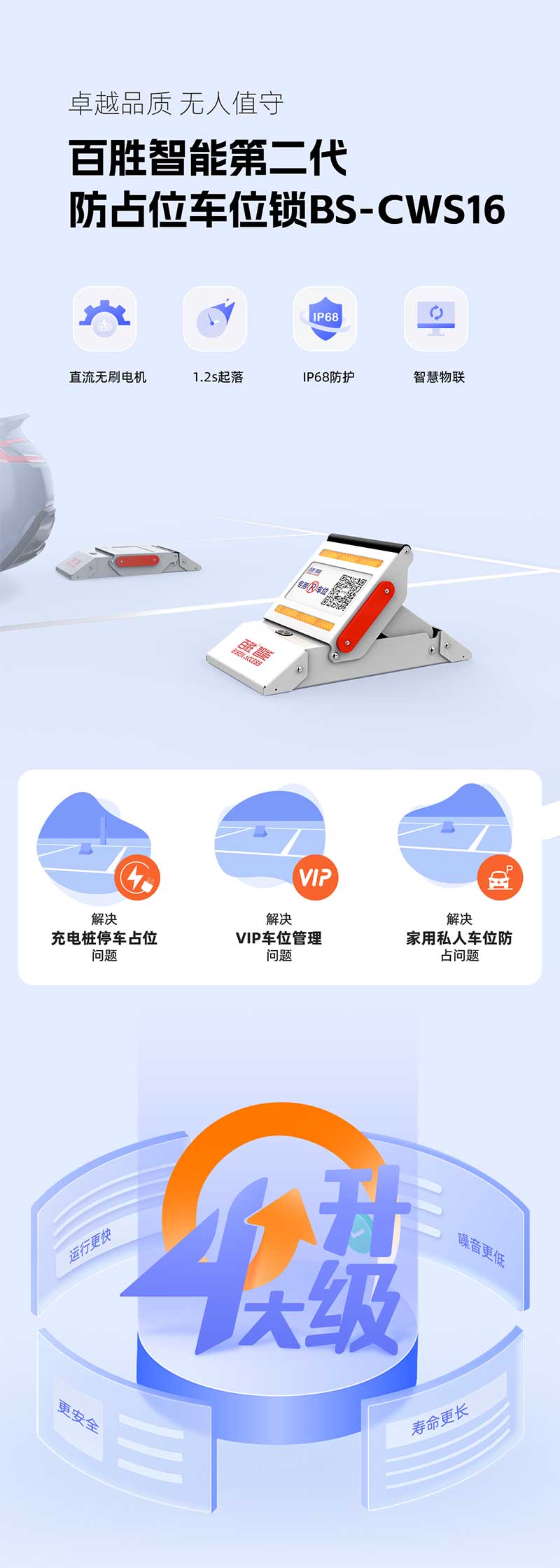 卓越品質(zhì)無人值守百勝智能第二代防占位車位鎖BS-CWS16