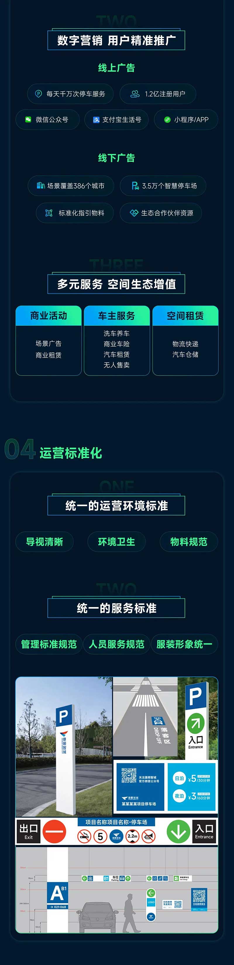 車位運(yùn)營優(yōu)化資源配置;數(shù)字營銷用戶精準(zhǔn)推廣;多元服務(wù)空間生態(tài)增值