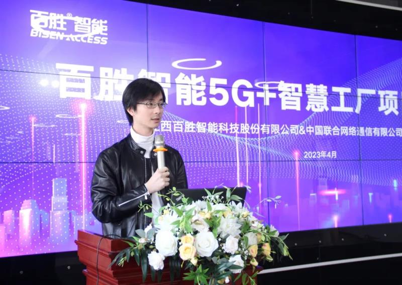 百勝智能“5G+智慧工廠”項目副總工程師熊麒超做項目匯報。