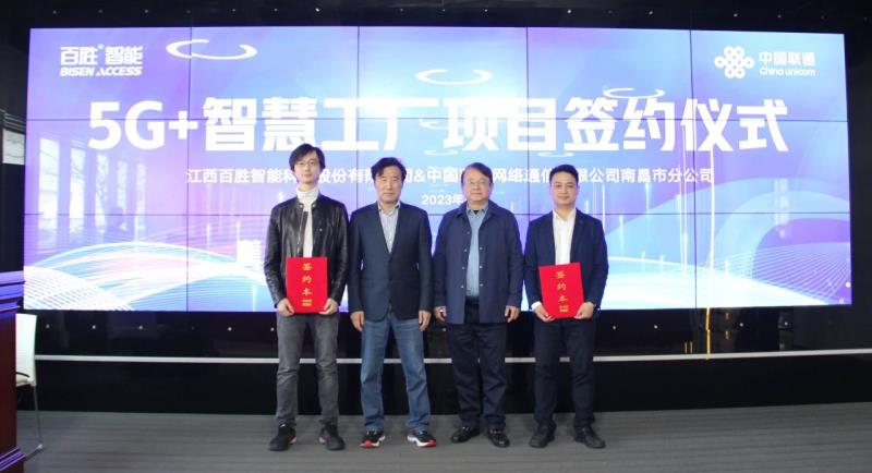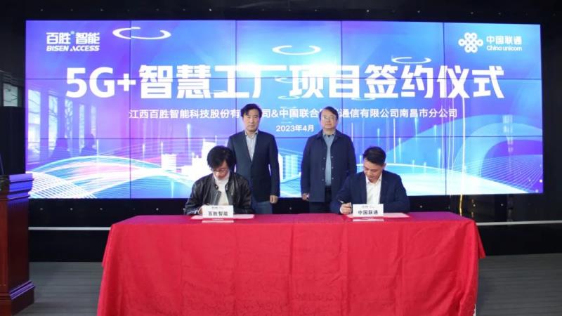 隨后,中國聯(lián)通南昌縣分公司總經(jīng)理胡凱敏和江西百勝智能科技股份有限公司副總經(jīng)理劉子堯分別代表雙方簽署協(xié)議,宣告百勝“5G+智慧工廠”項目正式啟動!劉潤根董事長、韓智洪總經(jīng)理一同見證了這一重要時刻。