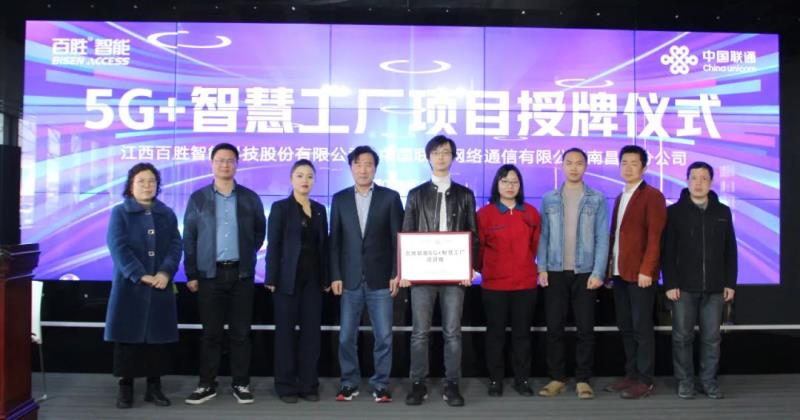 ▼百勝智能“5G+智慧工廠”項目授牌儀式