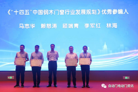 自動門電動門分會會長兼鋼木門窗委員會主任林夕范為團(tuán)體標(biāo)準(zhǔn)《居住建筑用裝甲門》參編單位頒發(fā)了銅牌,分別為《“十四五”中國鋼木門窗行業(yè)發(fā)展規(guī)劃》突出貢獻(xiàn)單位、優(yōu)秀參編人頒發(fā)了證書。