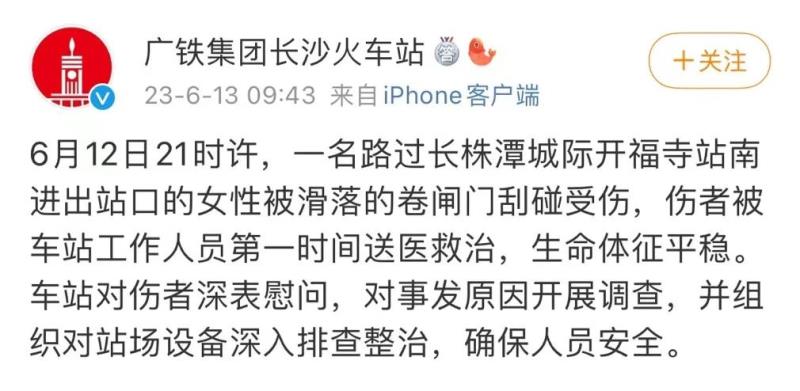 據(jù)有關(guān)新聞報(bào)道,6月12日晚,網(wǎng)曝湖南長(zhǎng)沙開(kāi)福寺站門(mén)口發(fā)生卷閘門(mén)墜落,意外砸傷一名乘客。