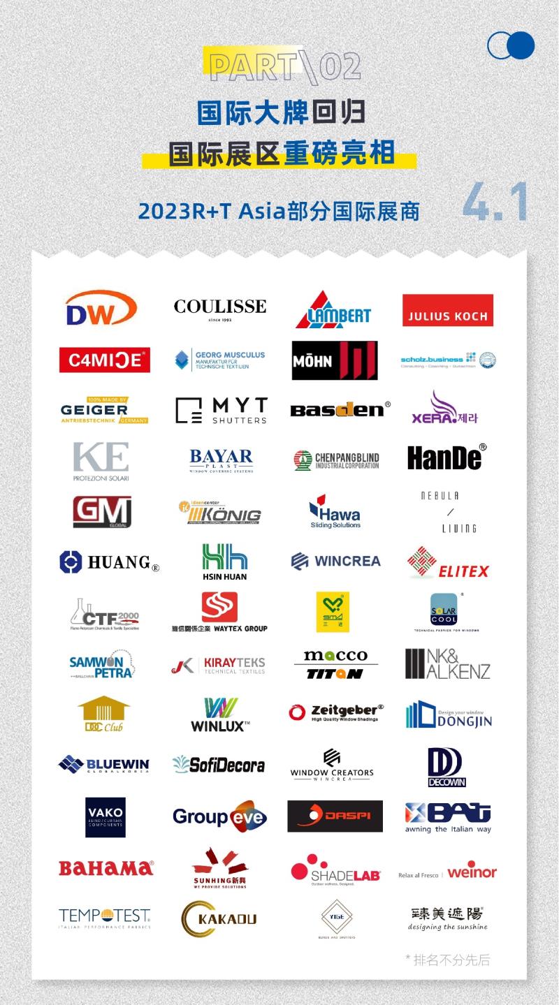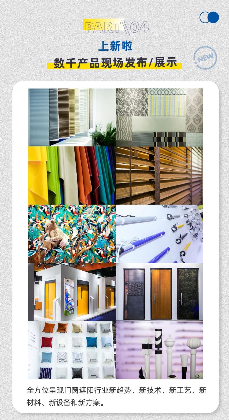 今年,眾多國際品牌紛紛強勢回歸,國內知名企業(yè)和新星品牌也將逐一亮相。覆蓋遮陽面料、配件、驅動及控制系統、外遮陽、機械、窗飾成品、百葉窗透氣窗等建筑遮陽細分領域以及工業(yè)門、自動門、車庫門、入戶門、門機門控等門及門禁上下游產業(yè)鏈,實現門窗遮陽全產業(yè)鏈跨界共融,資源共享。