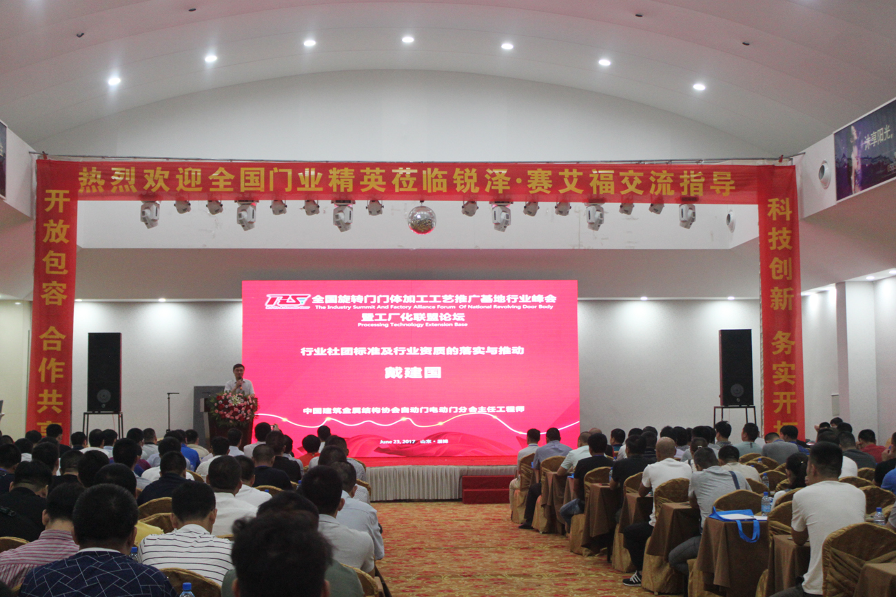 2017年6月23日由中國建筑金屬結(jié)構(gòu)協(xié)會自動門電動門分會、山東銳澤自動門有限公司、山東賽艾福自動化科技股份有限公司主辦的首屆“全國旋轉(zhuǎn)門門體加工工藝推廣基地行業(yè)峰會暨工廠化聯(lián)盟論壇”在“齊國故都”山東淄博成功召開。