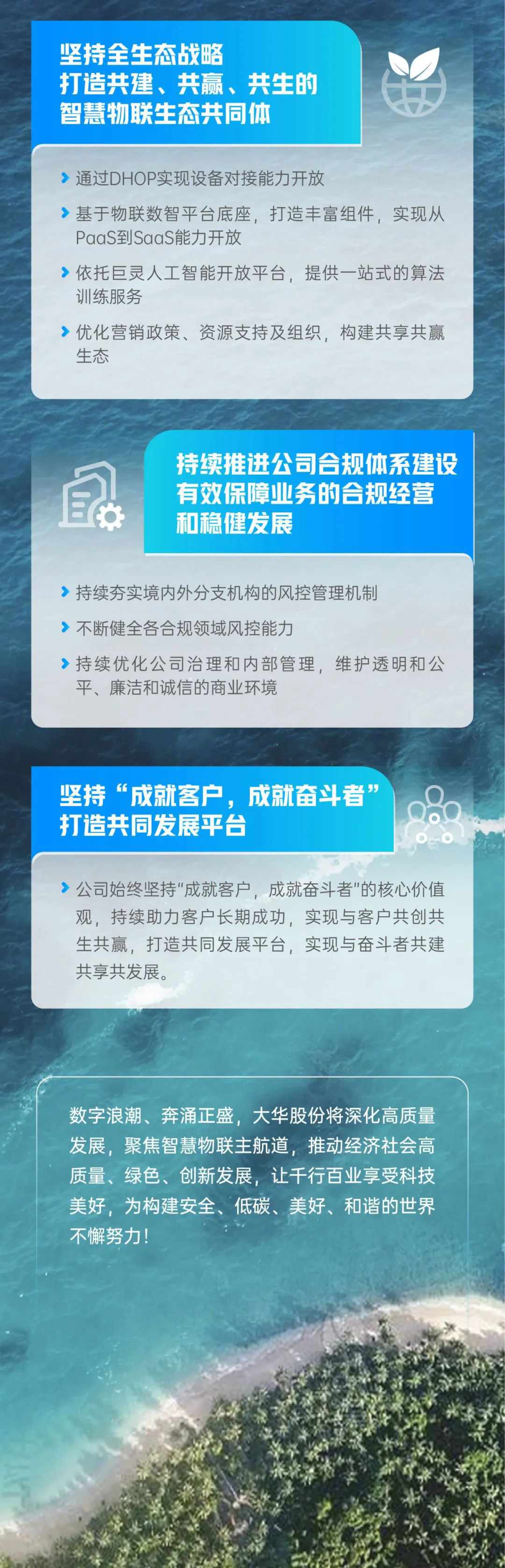 數(shù)字浪潮、奔涌正盛,大華股份將深化高質(zhì)量發(fā)展,聚焦智慧物聯(lián)主航道,推動經(jīng)濟社會高質(zhì)量、綠色、創(chuàng)新發(fā)展,讓千行百業(yè)享受科技美好,為構(gòu)建安全、低碳、美好、和諧的世界不懈努力!
