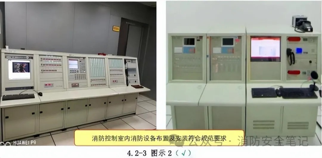 問題描述: 1)消防控制室內(nèi)消防設(shè)備布置擁擠、疊加,未有明顯間隔;[圖示1]2)設(shè)備安裝在輕質(zhì)墻上時未采取加固措施;3)設(shè)備底邊高出地(樓)面距離不足等?!緢D示1】