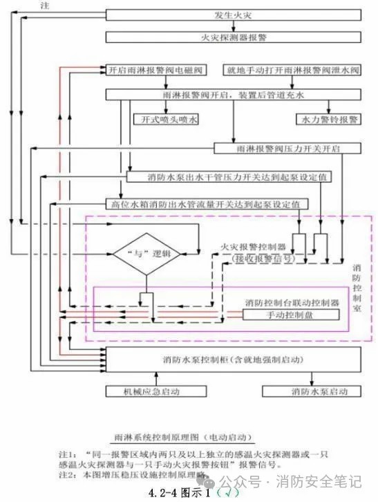 措施: 1.預(yù)作用系統(tǒng)的聯(lián)動控制設(shè)計,手動控制方式應(yīng)將噴淋消防泵控制箱(柜)的啟動和停止按鈕、預(yù)作用閥組和快速排氣閥入口前的電動閥的啟動和停止按鈕,用專用線路直接連接至設(shè)置在消防控制室內(nèi)的消防聯(lián)動控制器的手動控制盤,直接手動控制噴淋消防泵的啟動、停止及預(yù)作用閥組和電動閥的開啟;2.雨淋系統(tǒng)的聯(lián)動控制設(shè)計,手動控制方式應(yīng)將雨淋消防泵控制箱(柜)的啟動和停止按鈕、雨淋閥組的啟動和停止按鈕,用專用線路直接連接至設(shè)置在消防控制室內(nèi)的消防聯(lián)動控制器的手動控制盤,直接手動控制雨淋消防泵的啟動、停止及雨淋閥組的開啟;3.自動控制的水幕系統(tǒng)的聯(lián)動控制設(shè)計,手動控制方式,應(yīng)將水幕系統(tǒng)相關(guān)控制閥組和消防泵控制箱(柜)的啟動、停止按鈕用專用線路直接連接至設(shè)置在消防控制室內(nèi)的消防聯(lián)動控制器的手動控制盤,并應(yīng)直接手動控制消防泵的啟動、停止及水幕系統(tǒng)相關(guān)控制閥組的開啟。 |