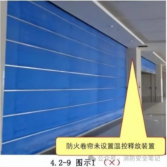 問題描述: 防火卷簾未按規(guī)范要求設(shè)置溫控釋放裝置。[圖示1]