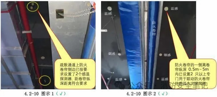 問題19:用于疏散通道上防火卷簾聯(lián)動控制的感溫探測器設(shè)置不符合規(guī)范要求 |
