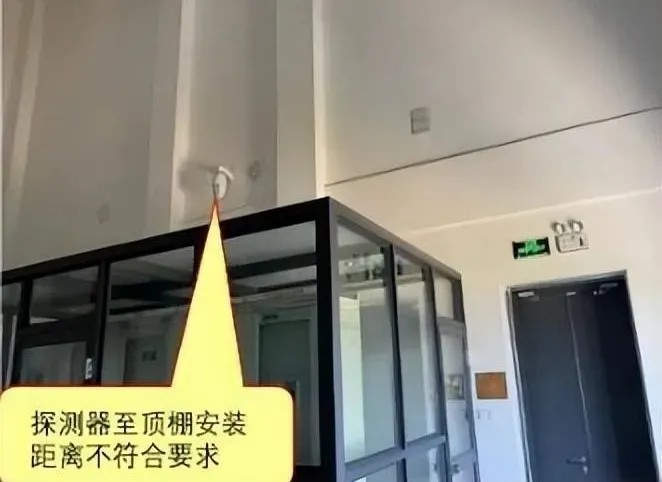 問題描述: 探測器的光束軸線至頂棚的垂直距離不符合規(guī)范要求?!緢D示1]。
