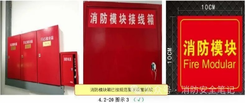 原因分析: 1)設(shè)計文件沒有特別注明要求;2)施工單位對規(guī)范不熟悉,沒有考慮到置于隱蔽處的模塊箱和分散設(shè)置的消防模塊,在后期消防檢修時查找困難、維修不便。相關(guān)規(guī)范: ☆《火災(zāi)自動報警系統(tǒng)設(shè)計規(guī)范》(GB 50116-2013)第6.8.1條、第6.8.4條。【圖示3]。正確做法: