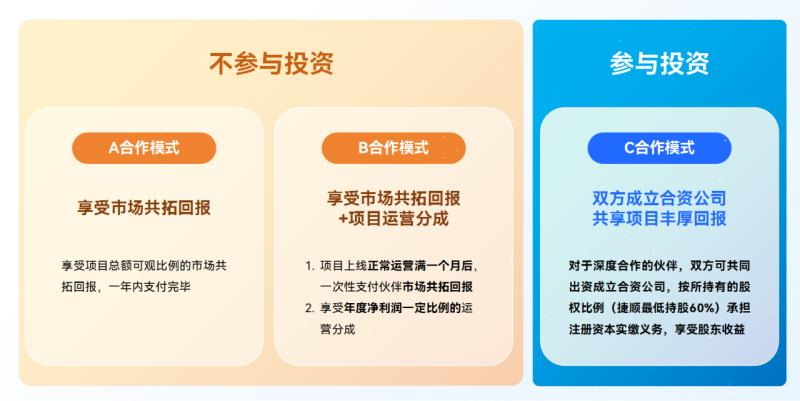 讓伙伴能賺錢、賺到錢,確保投入有回報(bào)。捷順科技副總經(jīng)理何軍先生表示,捷順科技?xì)g迎與各界菁英開展合作,構(gòu)建利益共同體。無論是個(gè)人還是企業(yè),無論是否擁有資金,只要擁有資源、人脈,渴望資源變現(xiàn)、轉(zhuǎn)型突破或?qū)で髢?yōu)質(zhì)投資機(jī)會(huì),我們都熱烈歡迎伙伴的加入。合作領(lǐng)域廣泛覆蓋商業(yè)、場(chǎng)館、景區(qū)、醫(yī)院及交通樞紐等各類業(yè)態(tài)停車場(chǎng)。值得一提的是,截至目前,捷順科技已構(gòu)建起強(qiáng)大的停車資產(chǎn)管理生態(tài)。捷順停車資管業(yè)務(wù)覆蓋超過100座城市,運(yùn)營(yíng)管理路內(nèi)外泊位超150萬個(gè),合作期內(nèi)收入逾30億元。