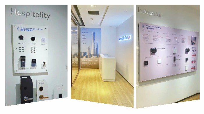 新辦公室不僅是日常運(yùn)營的基地,也是展示多瑪凱拔綜合解決方案的窗口。這里整合展示了我們?yōu)樯虡I(yè)、工業(yè)、酒店和住宅等垂直市場(chǎng)提供的安防及門控解決方案,涵蓋門用五金、自動(dòng)化出入口控制系統(tǒng)、智能鎖、門禁系統(tǒng)等品類,旨在為客戶提供安全、靈活且先進(jìn)的產(chǎn)品組合和服務(wù)。