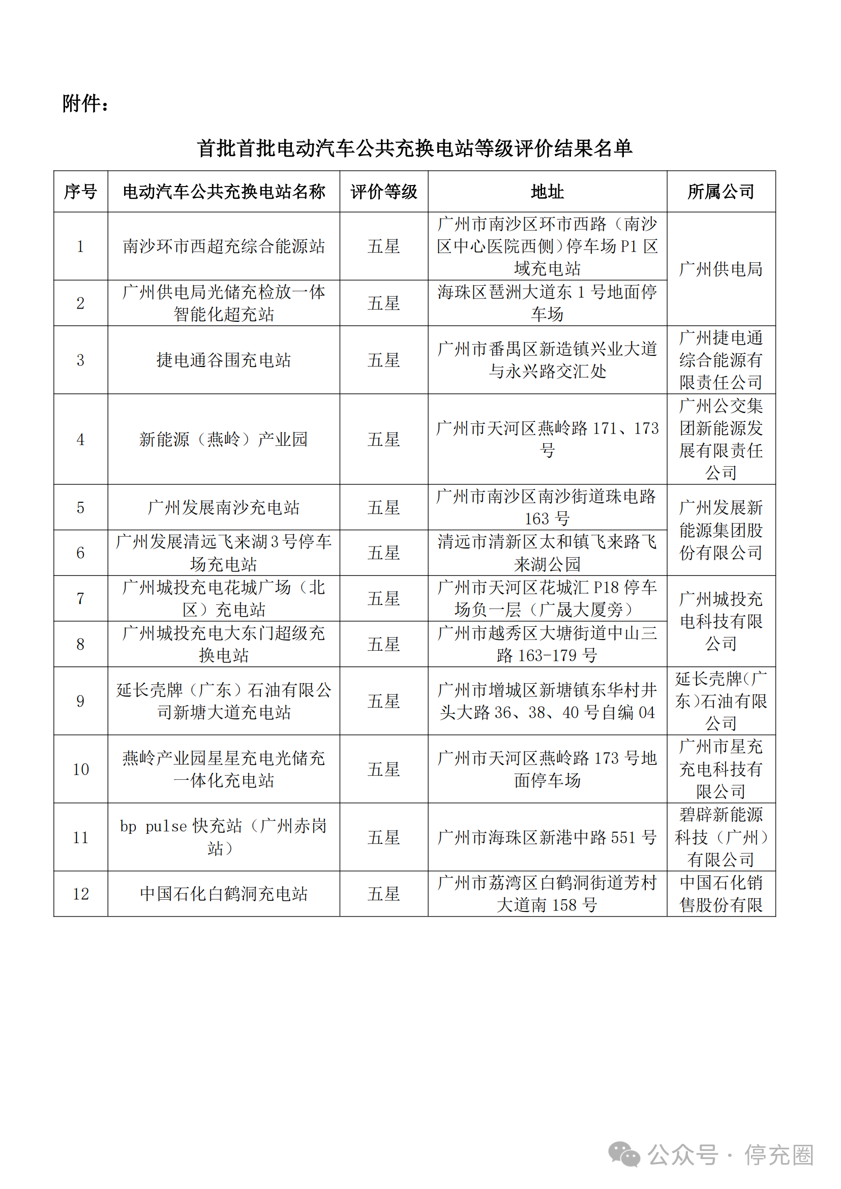 廣州市電動(dòng)汽車充換電設(shè)施行業(yè)協(xié)會(huì)于2023年10月28日發(fā)布了《電動(dòng)汽車公共充換電站等級(jí)評(píng)價(jià)規(guī)范》團(tuán)體標(biāo)準(zhǔn),同年12月1日試行《廣州市電動(dòng)汽車公共充換電站等級(jí)評(píng)價(jià)試行辦法》。并按《電動(dòng)汽車公共充換電站等級(jí)評(píng)價(jià)規(guī)范》評(píng)價(jià),2025年3月10日公布首批電動(dòng)汽車公共充換電站等級(jí)評(píng)價(jià)站點(diǎn)。