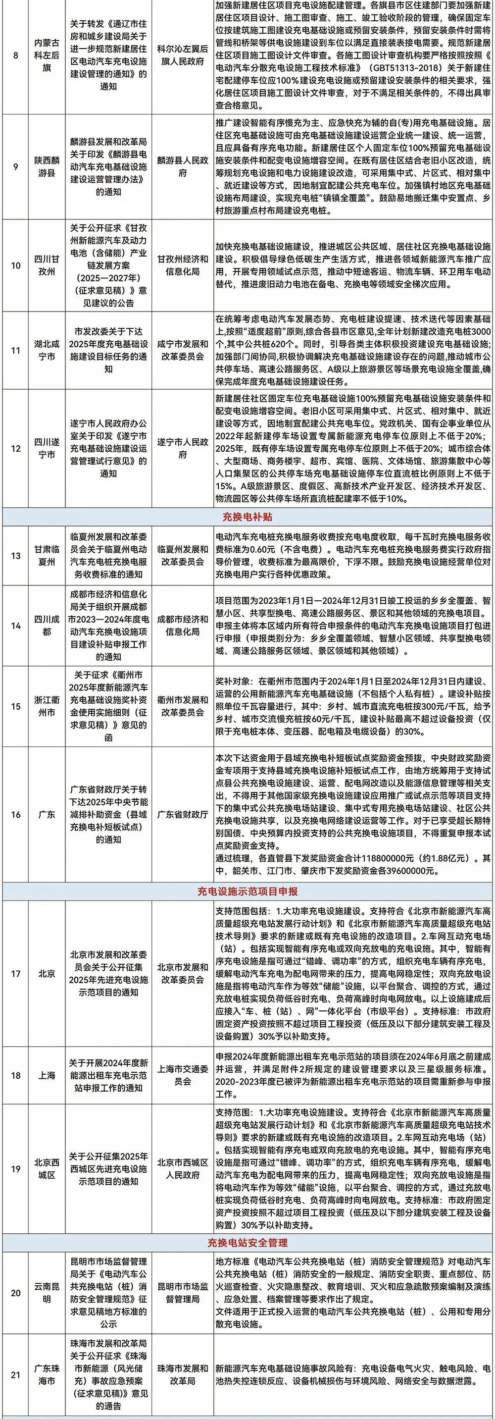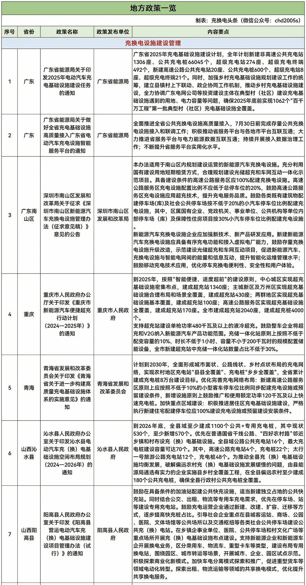 充換電設(shè)施建設(shè)管理:廣東、廣東南山區(qū)、重慶、青海、山西沁水縣、山西陽高縣、內(nèi)蒙古科左后旗、陜西麟游縣、四川甘孜州、湖北咸寧市、四川遂寧市等地共發(fā)布12條。
