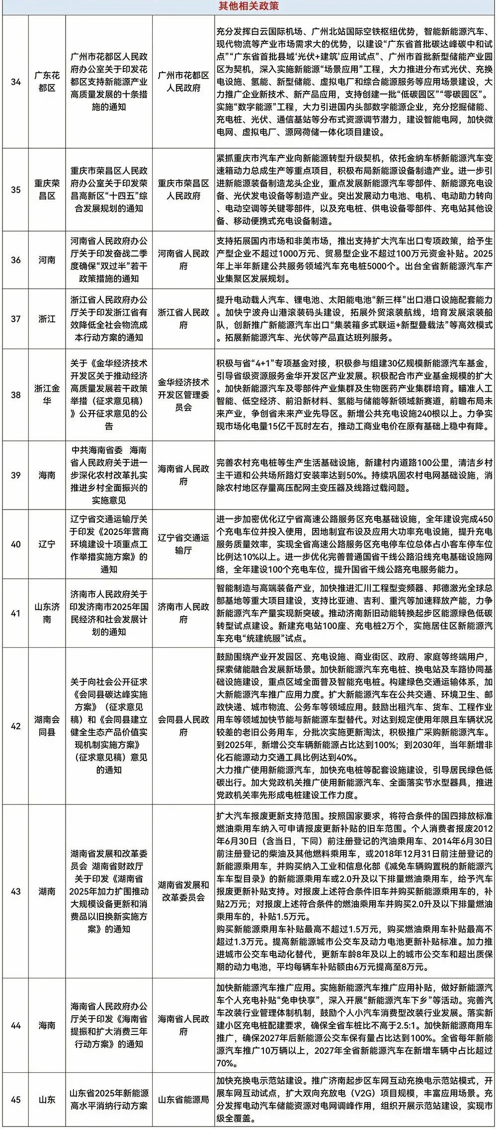 其他相關(guān)政策:廣東花都區(qū)、重慶榮昌區(qū)、河南、浙江、浙江金華、海南、遼寧、山東濟南、湖南會同縣、湖南、山東等地發(fā)布12條。