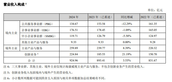 2024 年,海康威視總營(yíng)收達(dá)到 924.96 億元,同比增長(zhǎng) 3.53%。
