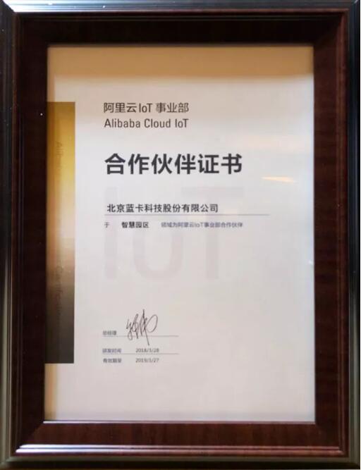 北京藍卡科技股份有限公司總裁周璇女士作為阿里云IoT行業(yè)合作伙伴代表出席了授牌儀式。