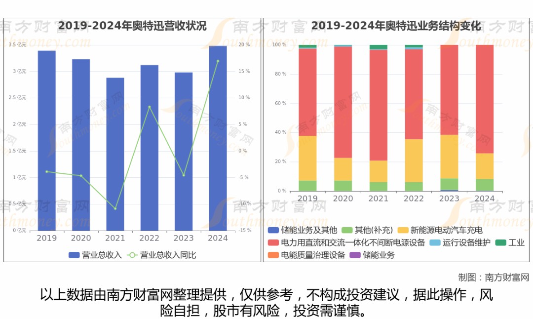 奧特迅于2008年5月6日在深圳證券交易所上市,公司主營業(yè)務為電力自動化電源業(yè)務、電動汽車充電業(yè)務和儲能業(yè)務。