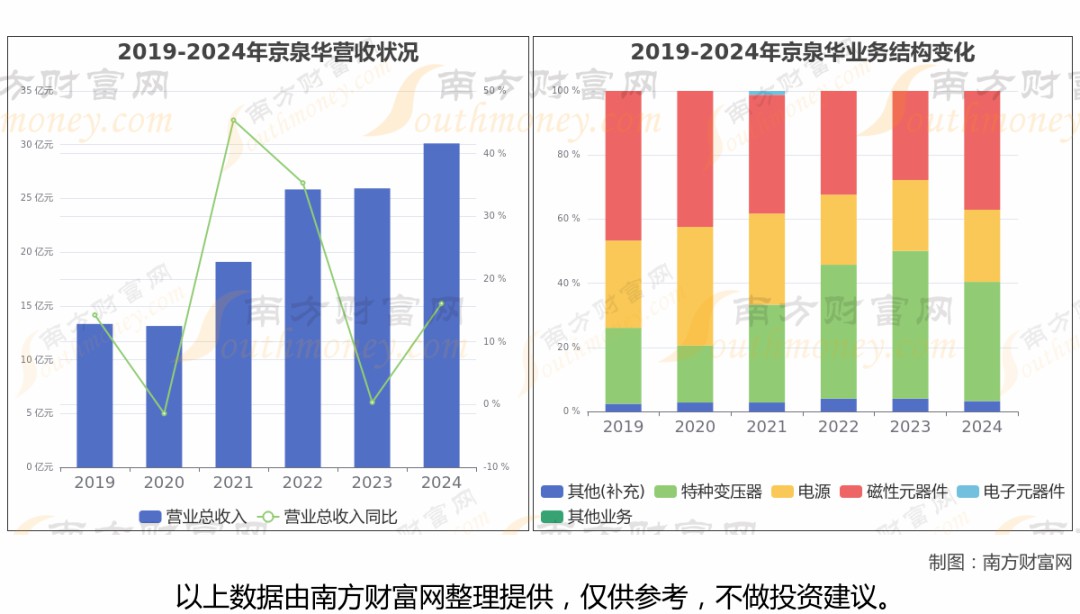 京泉華2024年數(shù)據(jù)顯示(如上圖),公司2024年營業(yè)收入30.12億,同比增長16.11%,近五年復合年增長率23.05%。