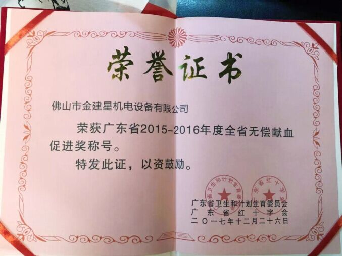6月29日,廣東省佛山市政府舉行了以“為他人著想,捐獻熱血,分享生命”為主題的世界獻血者日活動。活動上,金建星公司及董事長黃錦山分別榮獲單位和個人的廣東省無償獻血促進獎稱號。據(jù)了解,金建星智能科技有限公司連續(xù)八年,每年都自發(fā)組織無償獻血行動,黃錦山董事長以身作則,帶領(lǐng)著全公司員工及家人踴躍參與無償獻血行動。