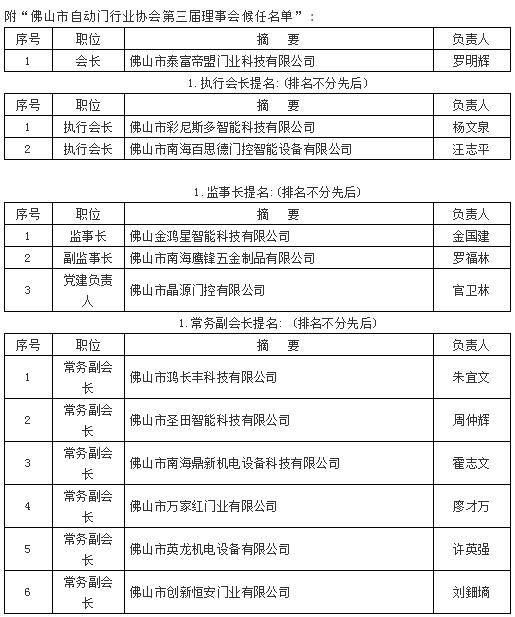 2018年11月27日上午,佛山市自動門行業(yè)協(xié)會舉行“第二屆第四次理事會”,經(jīng)三輪投票競選,“泰富門業(yè)”負責人羅明輝先生被理事會提名為協(xié)會第三屆會長。