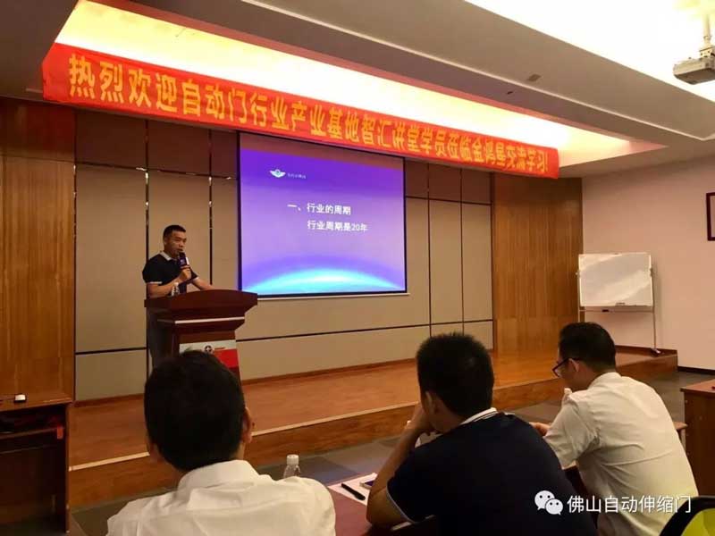 5月18日下午,佛山市自動門行業(yè)產(chǎn)業(yè)基地智講堂第二期培訓(xùn)課程----互聯(lián)網(wǎng)+電動門專題培訓(xùn)在佛山金鴻星智能科技有限公司會議室舉40余家會員企業(yè),80余位企業(yè)代表參加了本次專題活動。