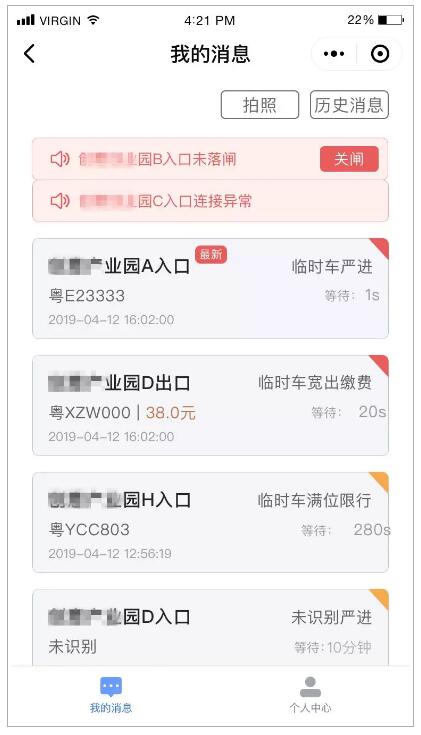 通過“一點(diǎn)停車場(chǎng)”公眾號(hào),可實(shí)現(xiàn)設(shè)備、網(wǎng)絡(luò)、系統(tǒng)異常實(shí)時(shí)警告,提醒車場(chǎng)管理人員及時(shí)處理異常,保障車場(chǎng)正常運(yùn)行!
