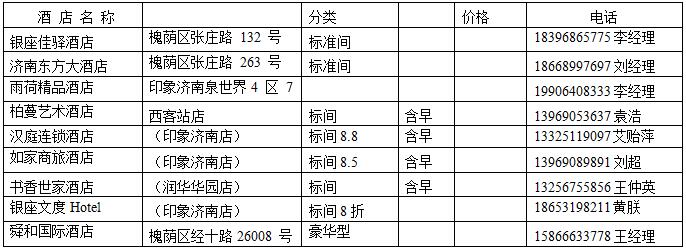 備 注:4、5、6月份是濟(jì)南旅游旺季,參展商請(qǐng)?zhí)崆邦A(yù)定房間;也可以通過攜程網(wǎng)直接預(yù)訂