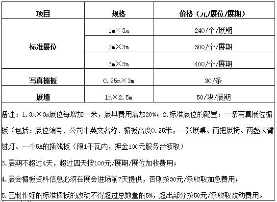 一、標(biāo)準(zhǔn)展位服務(wù)費(fèi)