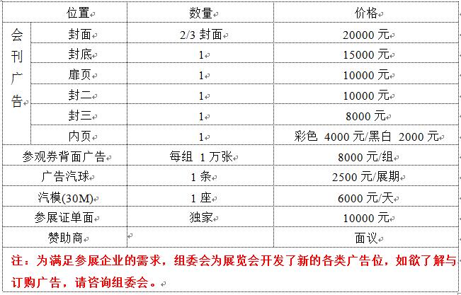 1、板墻(白色 2.5M 高)、洽談桌一張、椅子兩把、中文楣板、220 伏/5A 電源插座一只, 射燈 2 支。大會(huì)提供展品運(yùn)輸、會(huì)務(wù)、代訂機(jī)票服務(wù)、費(fèi)用由參展企業(yè)自理。