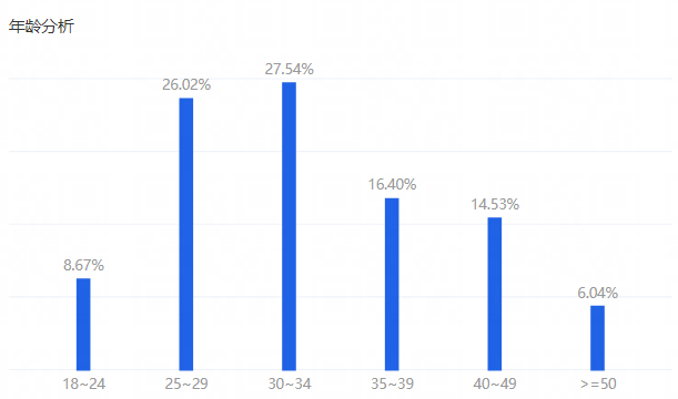 從今年雙11數(shù)據(jù)能看出,25~34歲的青年占比接近一半。即使將統(tǒng)計(jì)范圍拉長(zhǎng)到30天,數(shù)據(jù)變化也非常小。在京東雙11當(dāng)天的智能鎖消費(fèi)人群中,與其相近的26-35歲占比也達(dá)到了43.47%。