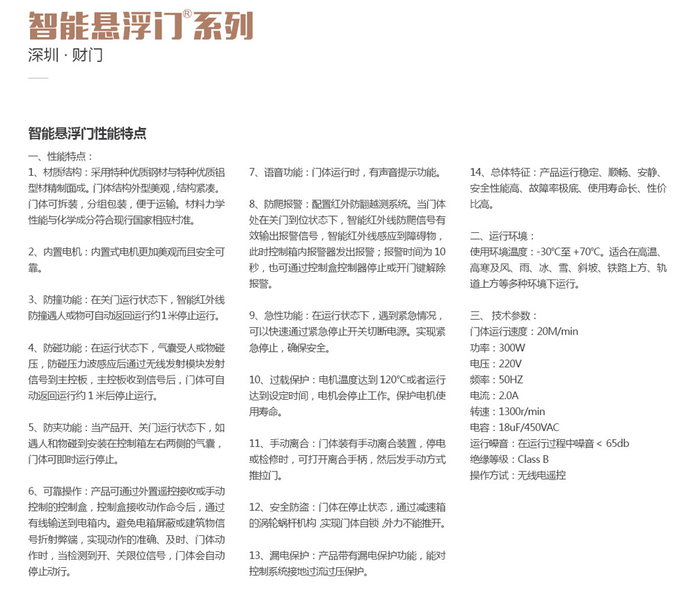 3、防撞功能:在關(guān)門運(yùn)行狀態(tài)下,智能紅外線防撞遇人或物可自動(dòng)返回運(yùn)行約1米停止運(yùn)行。