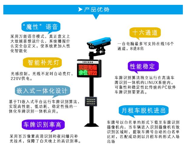停車場及小區(qū)出入口車牌識(shí)別技術(shù)的應(yīng)用,主要用于記錄車輛的牌照號(hào)碼、車牌顏色、出入時(shí)間,實(shí)現(xiàn)車輛的自動(dòng)管理,以便節(jié)省人力、提高效率;例如應(yīng)用于智能小區(qū)可以自動(dòng)判別駛?cè)胲囕v是否屬于本小區(qū),對(duì)非內(nèi)部車輛實(shí)現(xiàn)自動(dòng)計(jì)時(shí)收費(fèi)。在一些單位這種應(yīng)用還可以同車輛調(diào)度系統(tǒng)相結(jié)合,自動(dòng)、客觀地記錄本單位車輛的出車情況。