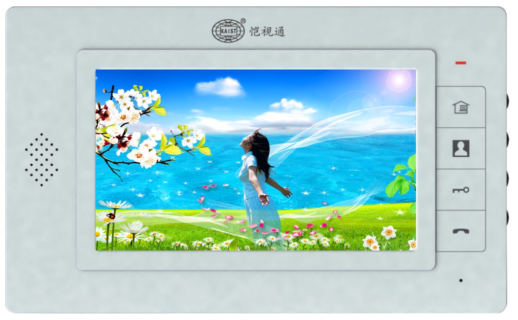 ABS全新料,高檔美觀,免提式可視分機(jī),7寸液晶寬屏顯示;具備對(duì)講、開(kāi)鎖、監(jiān)視、呼叫管理中心等基本功能;向管理中心緊急報(bào)警功能;16種和弦音樂(lè)鈴聲選擇功能;技術(shù)參數(shù);外形尺寸:245*150*23mm;振鈴聲:≥70db ;功耗:待機(jī)時(shí) 12mA 通話時(shí)500m;工作環(huán)境:-10~+50℃,濕度≤90%;線材電阻:≤10歐姆;信噪比:≥35db ;音頻響應(yīng):300~3000HZ ;諧波失真:≤5% ;工作電壓:DC18V±10%;視頻輸入:1.0VP-P75Ω;解晰度:1140×234
