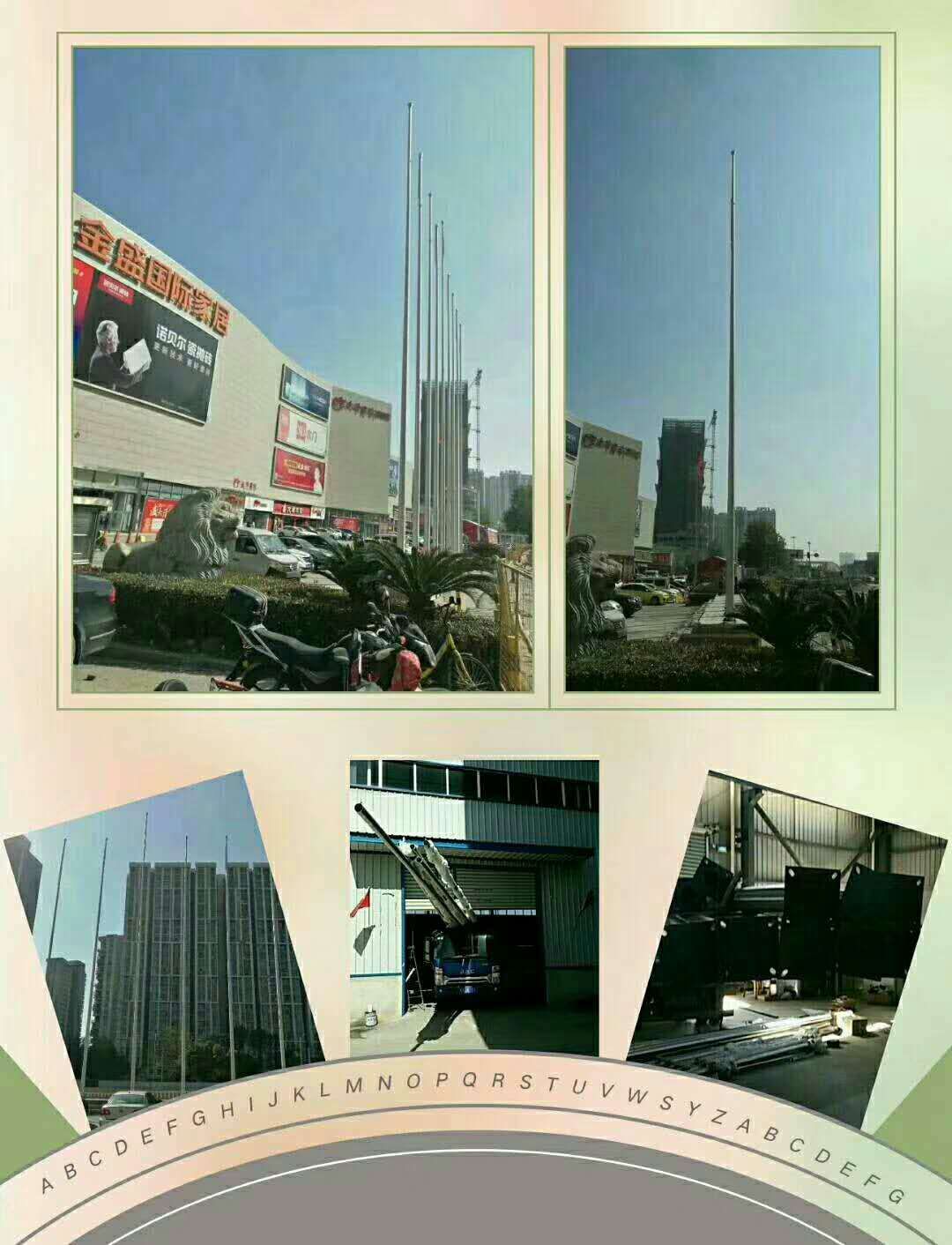 本公司是一家集研發(fā)、設(shè)計、生產(chǎn)、銷售及服務(wù)于一體的大型旗桿專業(yè)生產(chǎn)企業(yè)。銷售網(wǎng)絡(luò)遍布全國及世界各地。其主要產(chǎn)品包括不銹鋼旗桿、風(fēng)動旗桿、電動旗桿、水平旗桿、奏國歌旗桿、軍旗旗桿、道路旗桿等一系列產(chǎn)品。公司質(zhì)量方針:精心設(shè)計求完美,精確制造保質(zhì)量,精誠服務(wù)贏信譽。為了打造高品質(zhì)的產(chǎn)品,我們擁有專業(yè)的技術(shù)人才,并從國外引進先進的高科技生產(chǎn)設(shè)備。以滿足更多客戶對產(chǎn)品的需要。