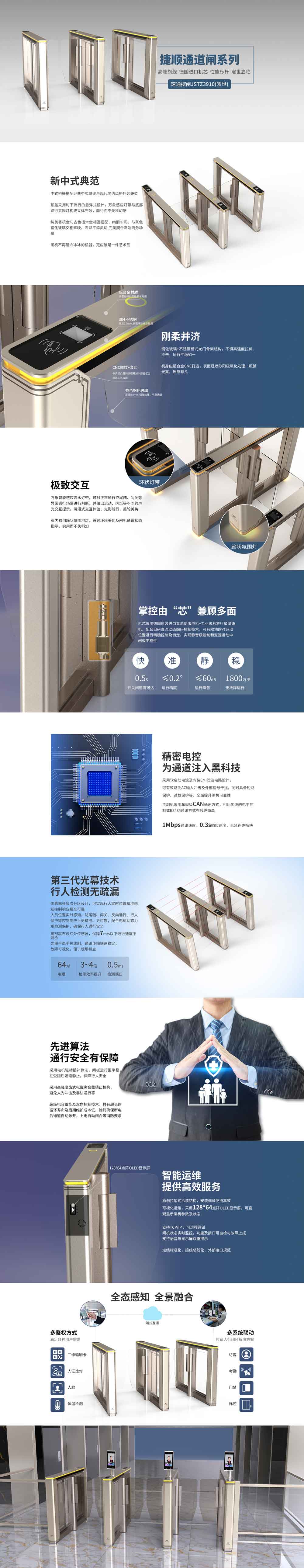 速通擺閘JSTZ3910(曜世)是捷順通道閘的旗艦產(chǎn)品,將新中式元素與北歐簡(jiǎn)約設(shè)計(jì)風(fēng)格巧妙結(jié)合,定位于甲級(jí)與5A寫字樓及政府機(jī)構(gòu)大堂等高端室內(nèi)場(chǎng)所使用。外殼由合金打造,氧化著色盡顯商務(wù)質(zhì)感。自研伺服驅(qū)動(dòng)編碼控制技術(shù)配合插補(bǔ)算法,保證閘板運(yùn)行的精確與穩(wěn)定,平均無(wú)故障運(yùn)行次數(shù)可達(dá)1800萬(wàn)次。采用第三代光幕檢測(cè)技術(shù),檢測(cè)間距更小,靈敏度更高,通行更安全。
