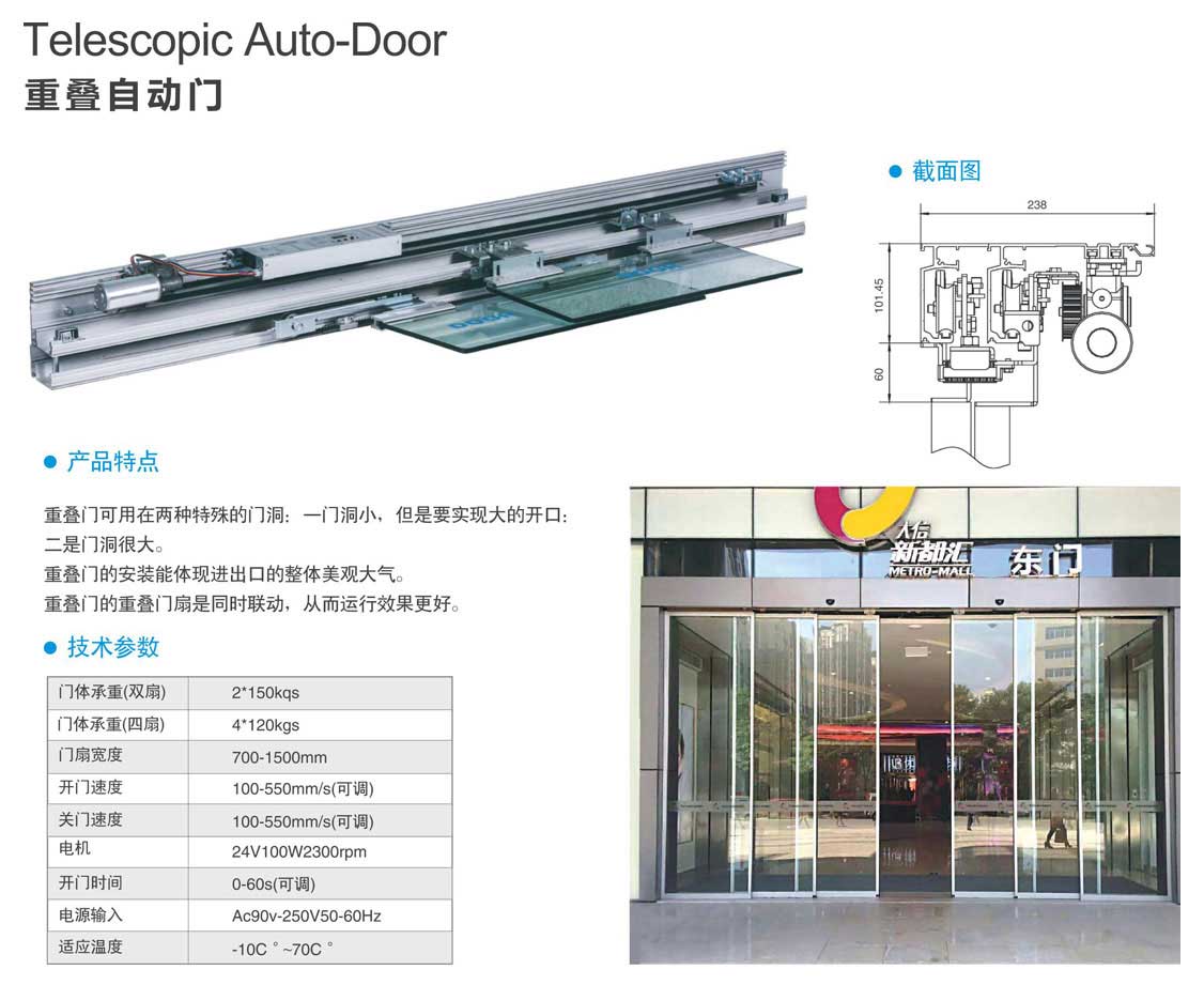 重疊自動門產(chǎn)品,請仔細(xì)瀏覽本頁面。如您還有疑問,請撥打服務(wù)電話,我們將免費(fèi)為您提供重疊自動門的款式、價格、生產(chǎn)廠家、安裝維修等方面的咨詢服務(wù)。