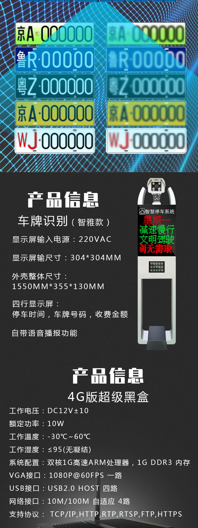 溫馨提醒:選購車牌識別產(chǎn)品,請仔細(xì)瀏覽本頁面。如您還有疑問,請撥打服務(wù)電話,我們將免費為您提供車牌識別的款式、價格、生產(chǎn)廠家、安裝維修等方面的咨詢服務(wù)。