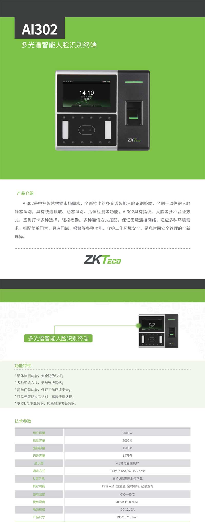 產(chǎn)品名稱:多光譜智能人臉識(shí)別終端AI302