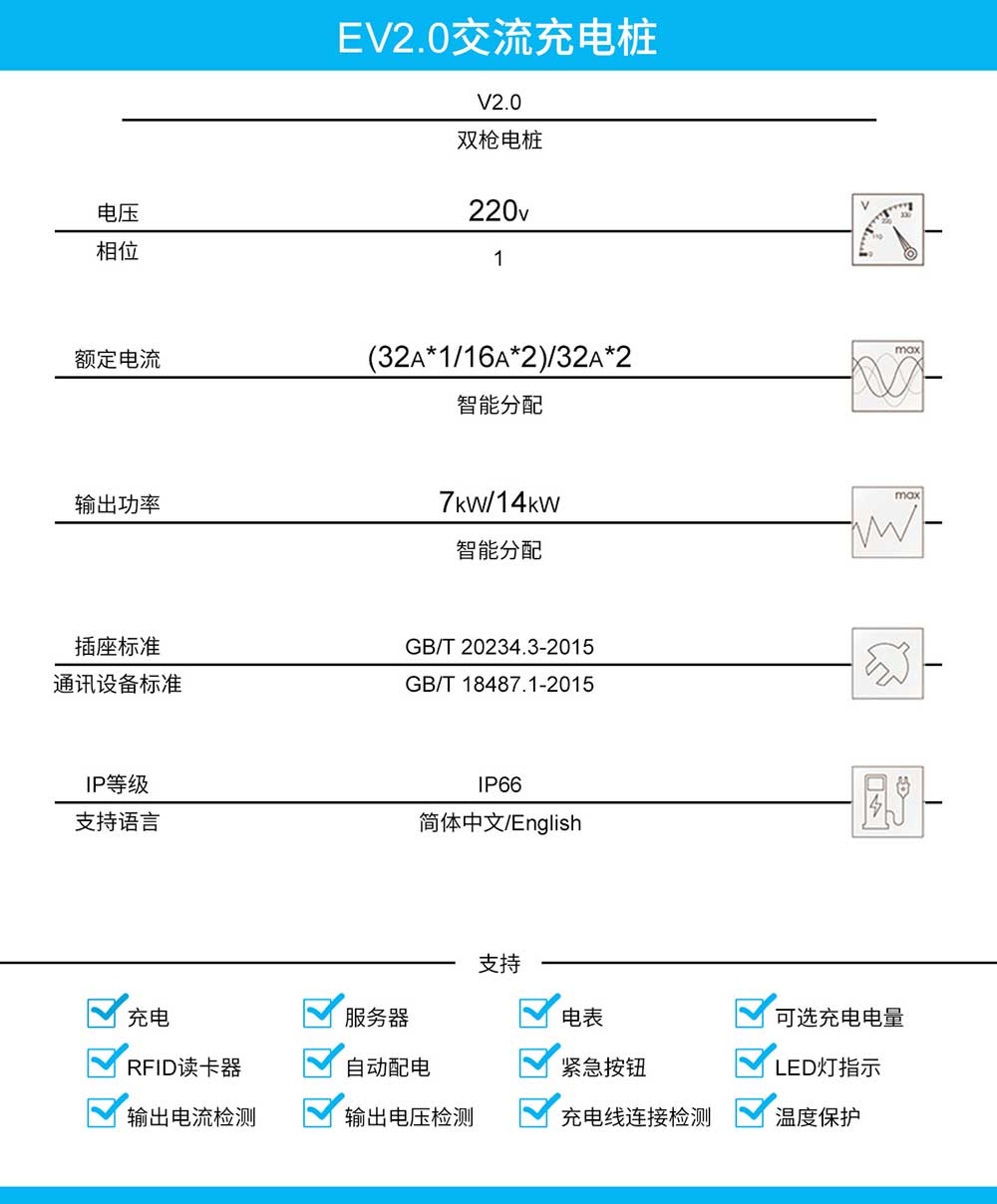 EV2.0交流充電樁產(chǎn)品,請(qǐng)仔細(xì)瀏覽本頁(yè)面。如您還有疑問,請(qǐng)撥打服務(wù)電話,我們將免費(fèi)為您提供EV2.0交流充電樁的款式、價(jià)格、生產(chǎn)廠家、安裝維修等方面的咨詢服務(wù)。