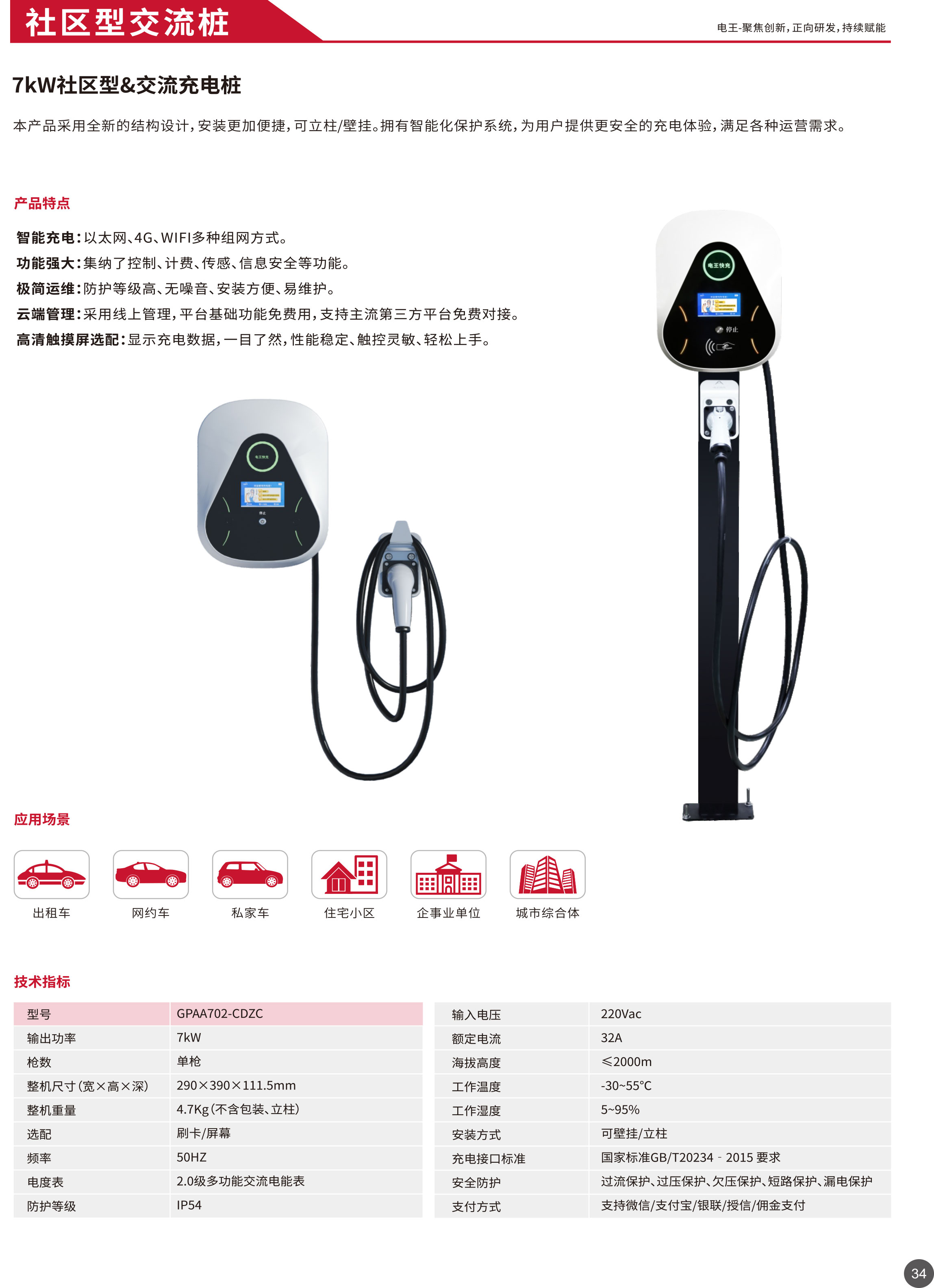 產(chǎn)品名稱:7kW社區(qū)型&交流充電樁(國標(biāo))