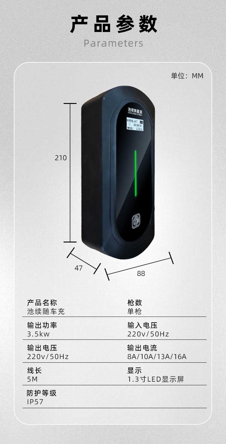 溫馨提醒:選購新能源隨車充產(chǎn)品,請仔細瀏覽本頁面。如您還有疑問,請撥打服務電話,我們將免費為您提供新能源隨車充的款式、價格、生產(chǎn)廠家、安裝維修等方面的咨詢服務。