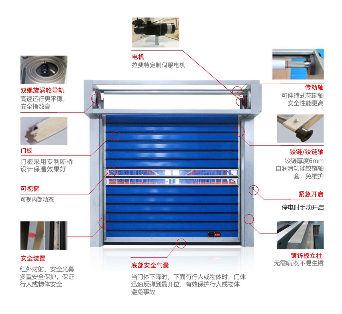 抗風(fēng)快速門(mén)——集快速、節(jié)能、密封、高效、抗風(fēng)、環(huán)保于一身的新型金屬工業(yè)門(mén),擁有很高的可靠性和實(shí)用性,其運(yùn)行速度是工業(yè)滑升門(mén)的6倍以上,憑借極高的工作效率,更高的安全性,硬質(zhì)快速門(mén)正在逐漸替代工業(yè)滑升門(mén)。