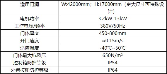上疊式飛機庫大門主要有立柱、軌道、上下過梁、簾布固定架、簾布、繩輪、提升機構、安全系統、控制系統等部件組成。其中過梁和簾布固定架采用優(yōu)質型鋼制造,簾布選用一定強度PVC簾布。當提升機構工作時,提升機上的鋼絲繩拉動下過梁上移,將簾布固定架和簾布疊加在下過粱上,開啟到位后,由上行程限位開關限位。當提升機構反向運動,下過梁下移,實現門體的關閉。在關門到位時,由布設在繩輪上的行程限位開關限位。在門體運行過程中,如出現鋼繩斷裂,安全保險機構作用,防止門體墜落??刂撇捎肞LC變頻控制變頻,門體在運行過程中緩啟緩停。主要適用于大型船廠、大型工業(yè)車間、飛機庫等場合,