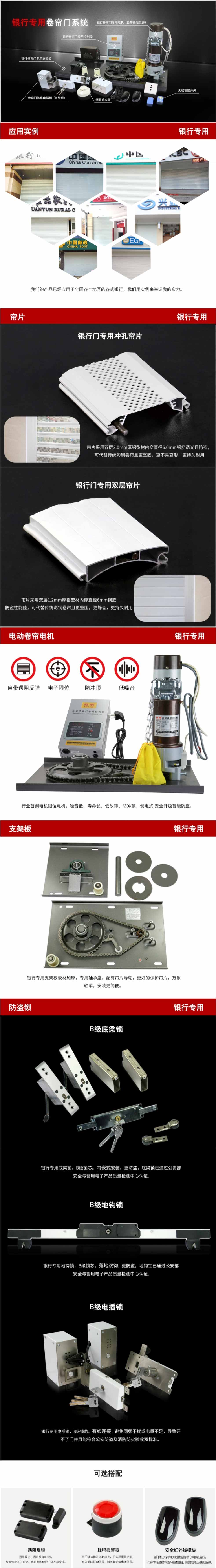 銀行專用卷簾門系統(tǒng)產(chǎn)品,請仔細(xì)瀏覽本頁面。如您還有疑問,請撥打服務(wù)電話,我們將免費(fèi)為您提供銀行專用卷簾門系統(tǒng)的款式、價(jià)格、生產(chǎn)廠家、安裝維修等方面的咨詢服務(wù)。
